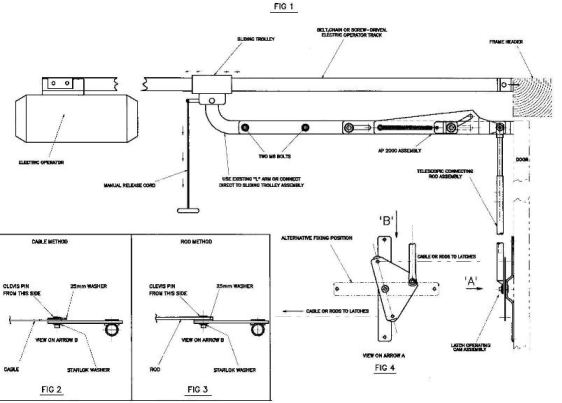linking the operator sliding trolley to the door bracket. (and 'L' bracket if