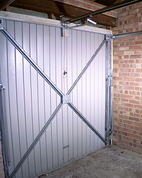 A remote controlled garage door will be locked automatically by the electric operator at the top when closed.